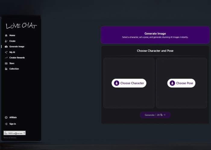 Vietoj teksto, platforma leidžia pasirinkti personažą, nustatyti jo pozą ir kurti erotinius vaizdus, kurie atrodo pritaikyti jūsų vaizduotei.