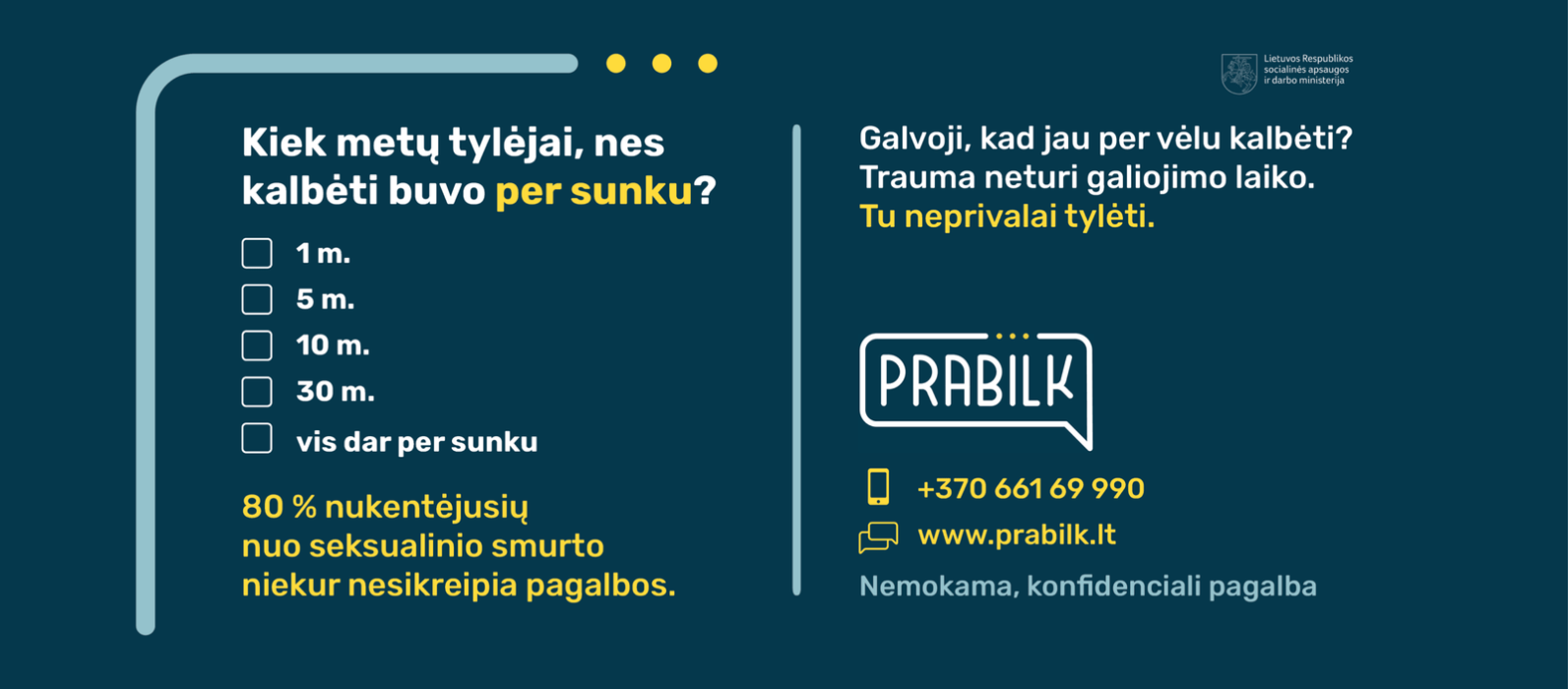 8 iš 10 seksualinį smurtą patyrusių žmonių apie tai niekam nepasako – nei tą pačią dieną, nei po metų, kartais niekada. Tai ne tik statistika [daugiau…]