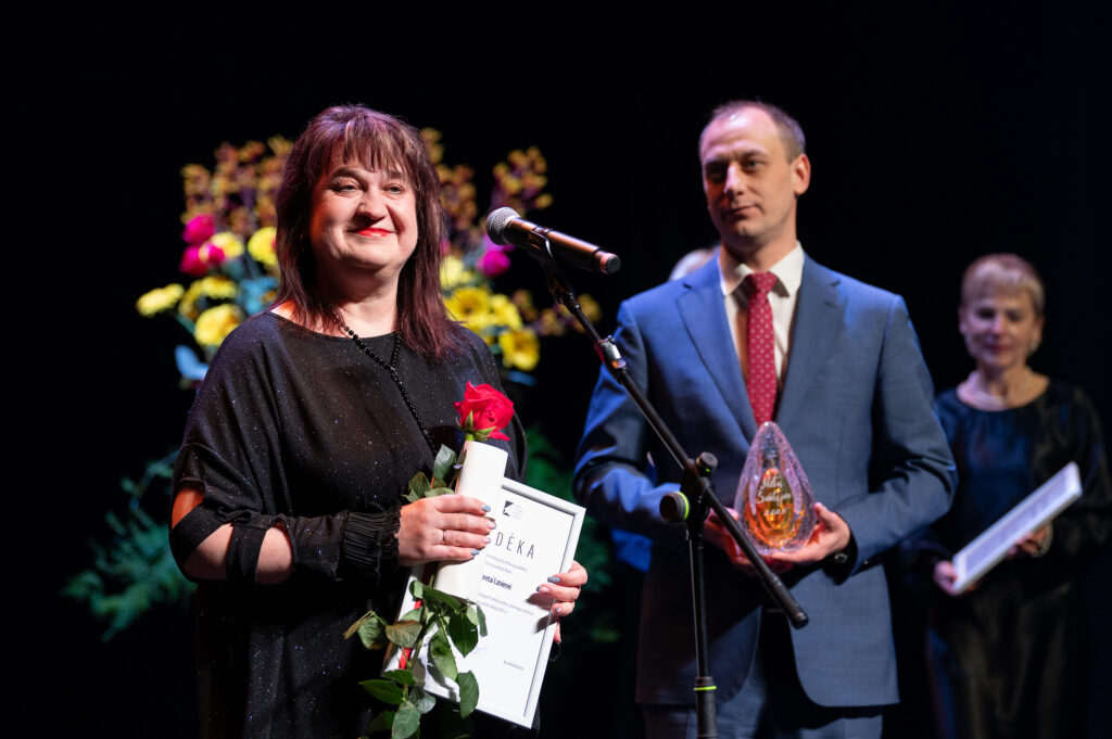 Renginio kulminacijos metu paskelbta „Metų švietėjas 2025“ titulo laureatė – Loreta Latvienė, Kauno jėzuitų gimnazijos geografijos mokytoja ekspertė.